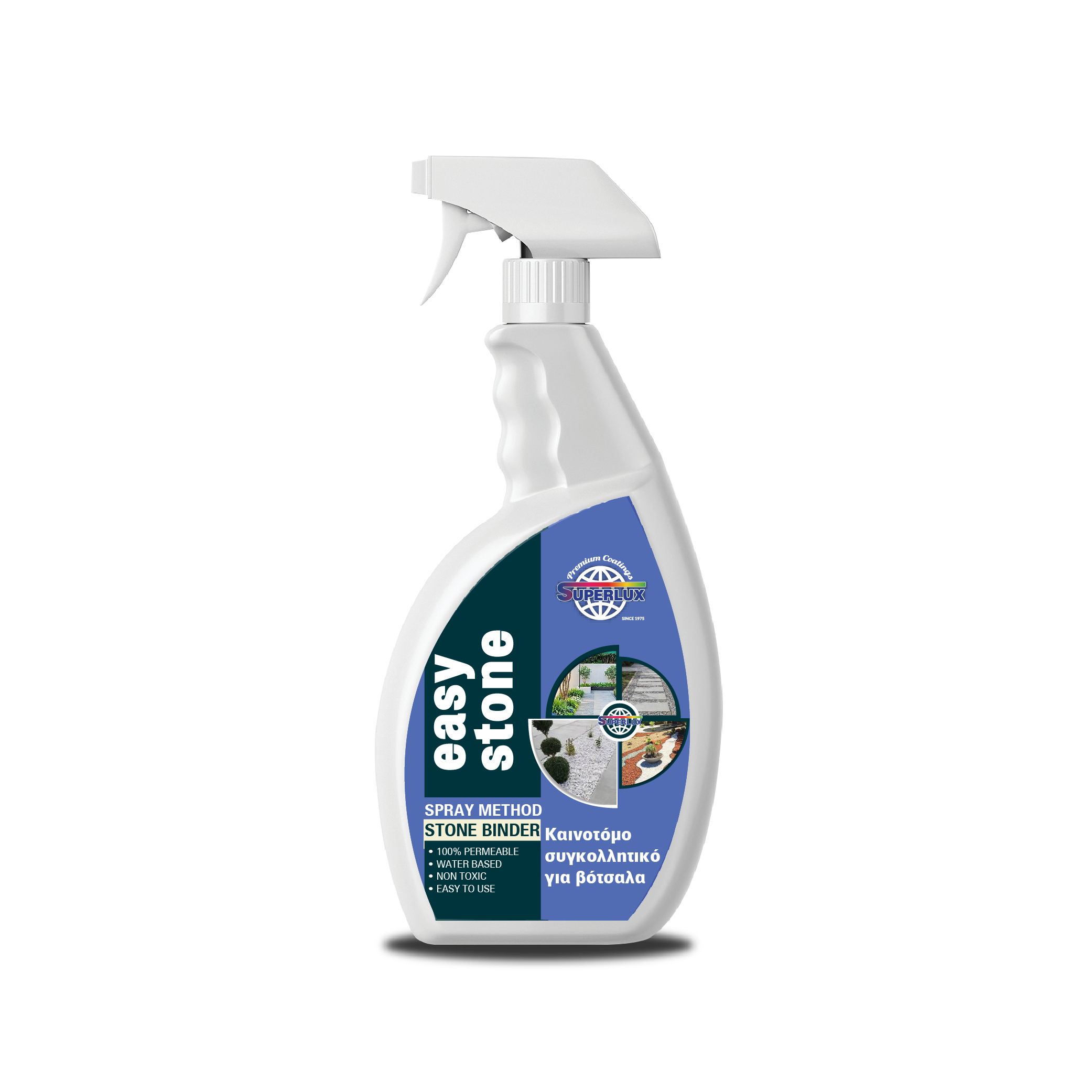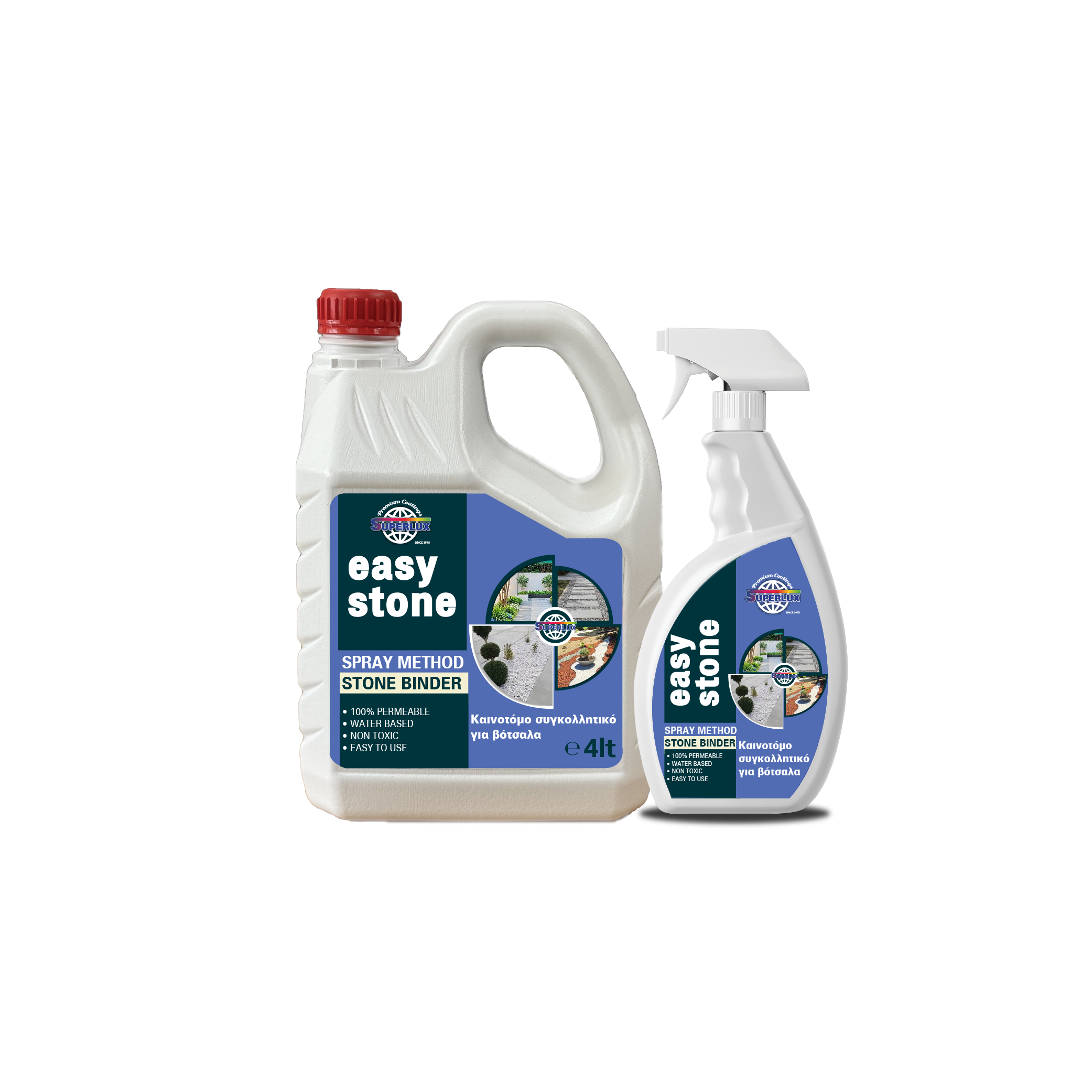 Easy Stone is: Transparent, non-toxic acrylic-based binding resin for decorative stones and gravel. Holds loose gravel and decorative stones exactly where they